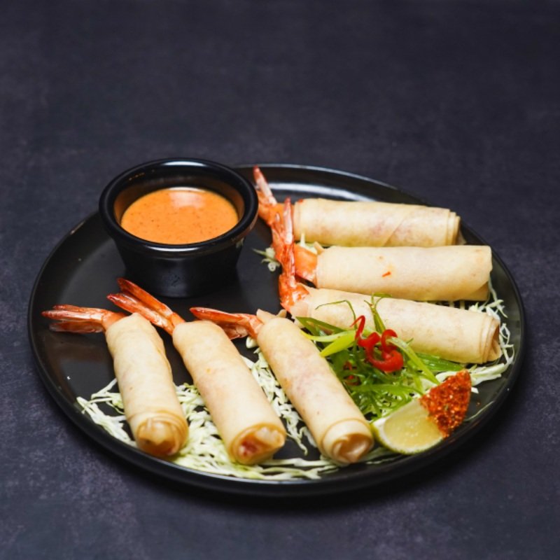 Fried shrimp roll served with spicy dipping sauce.